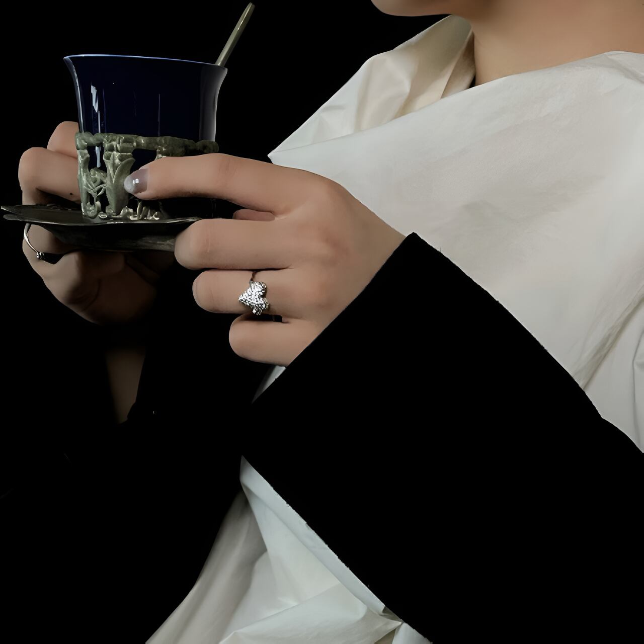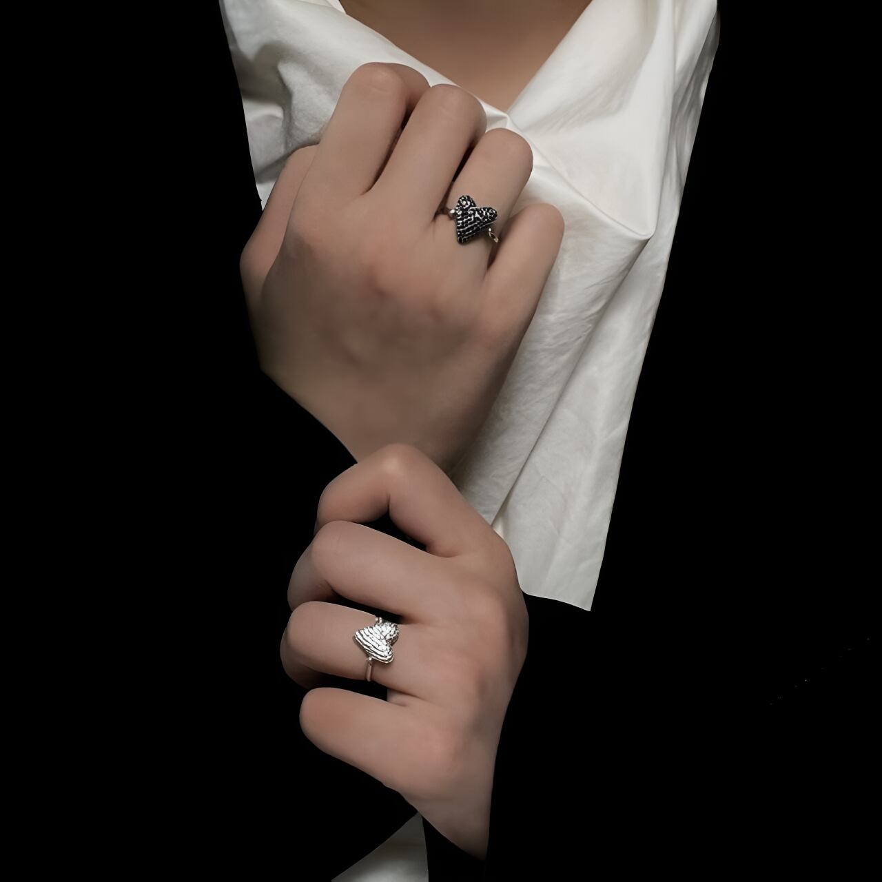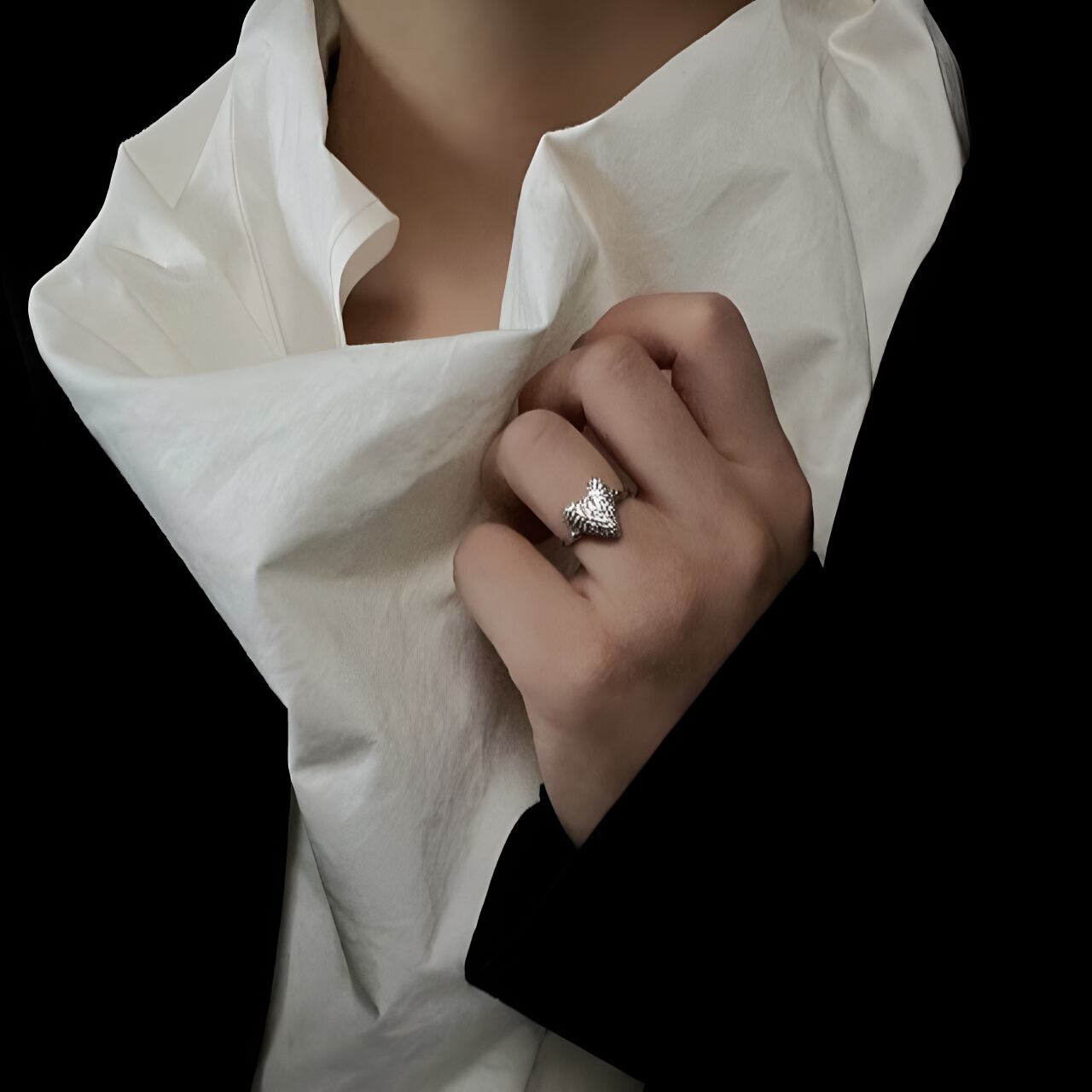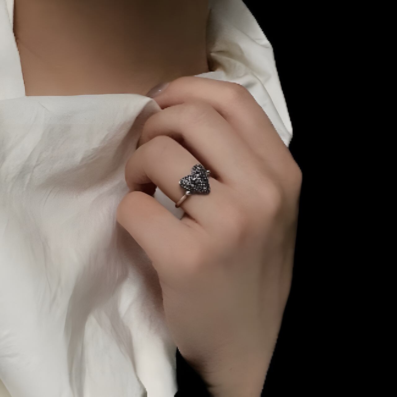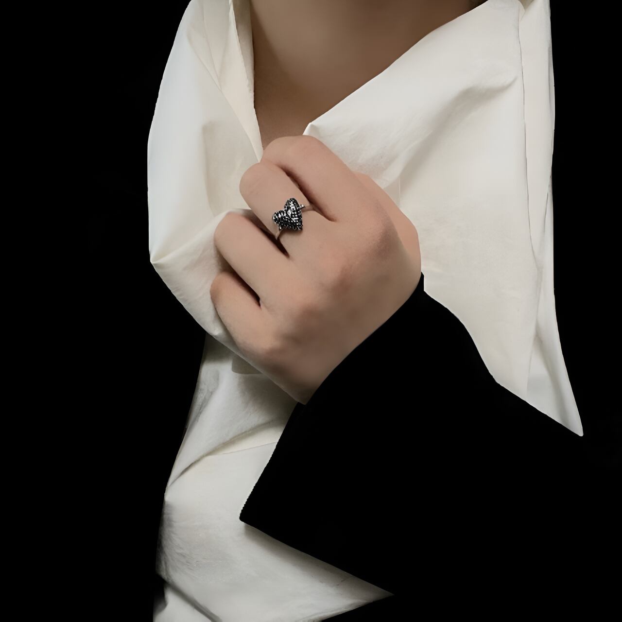 シンプルでエレガントなデザインでありながら、ユニークで目を引くアクセサリーです。ハートのデザインが手元に程よい抜け感を与え、指先を華やかに演出します。