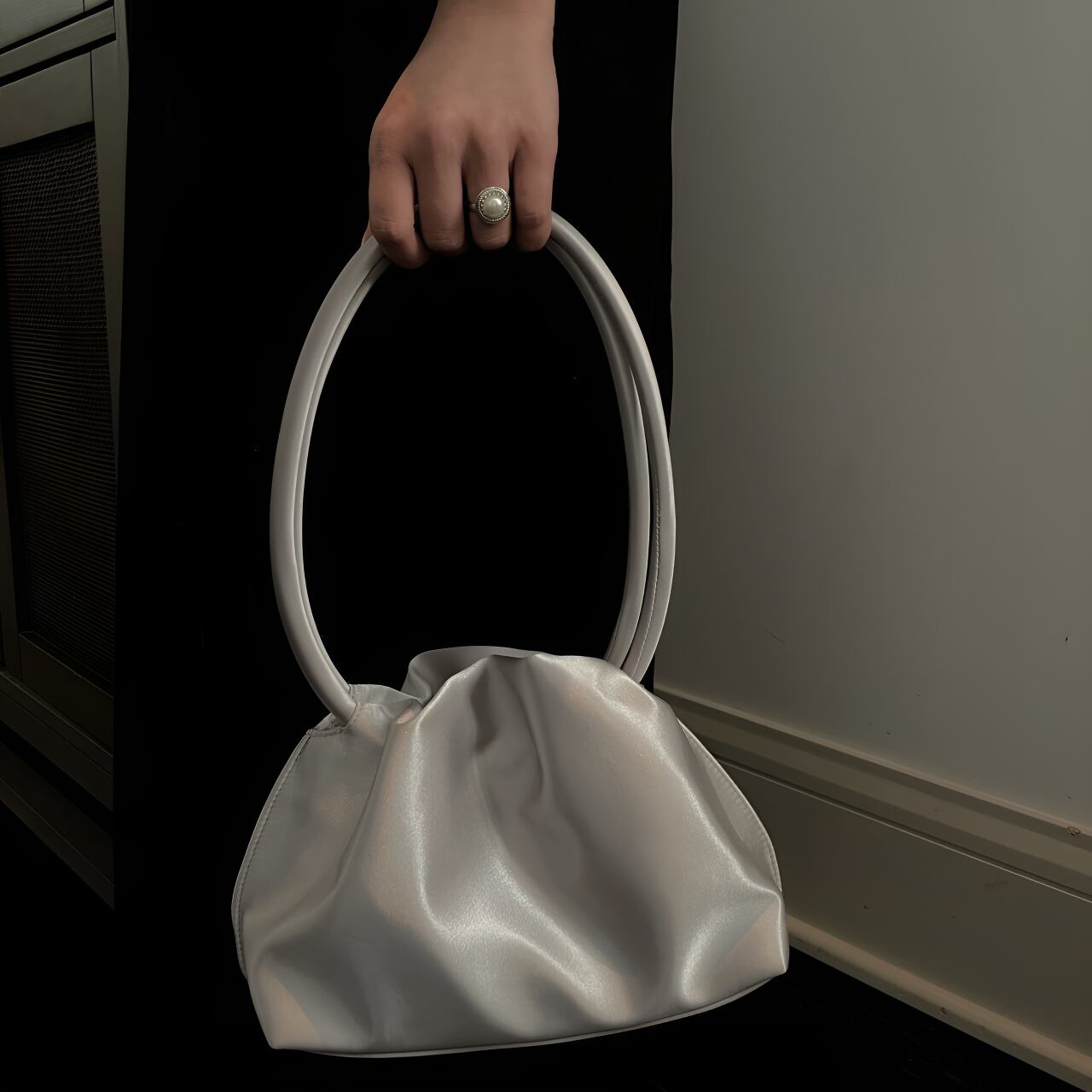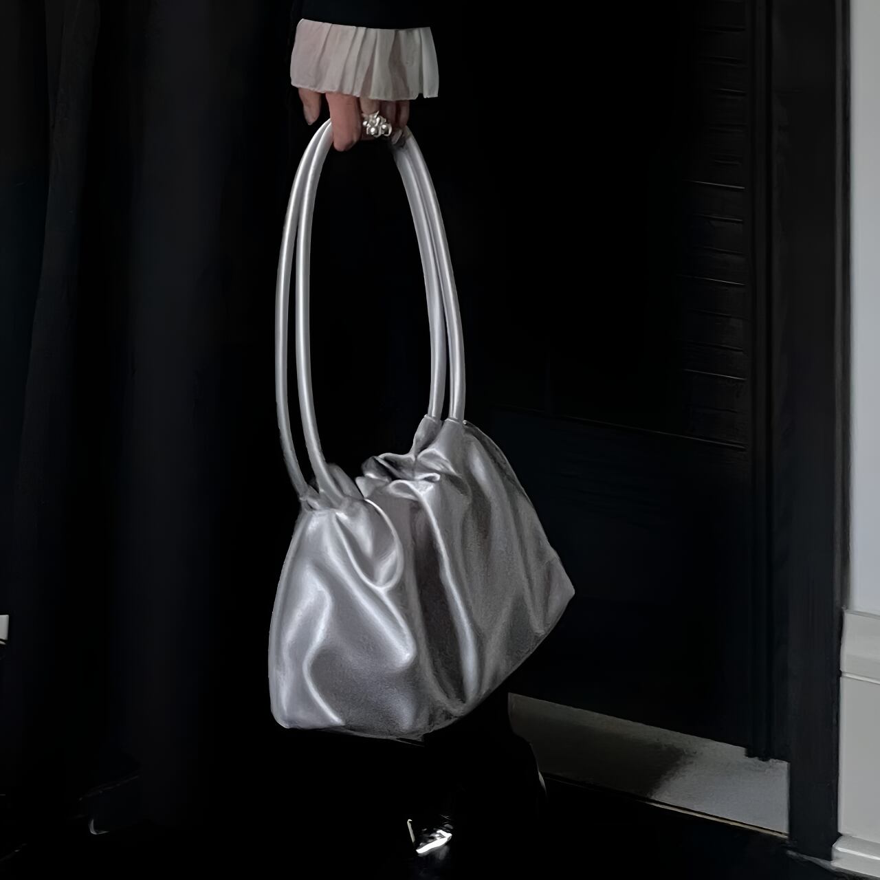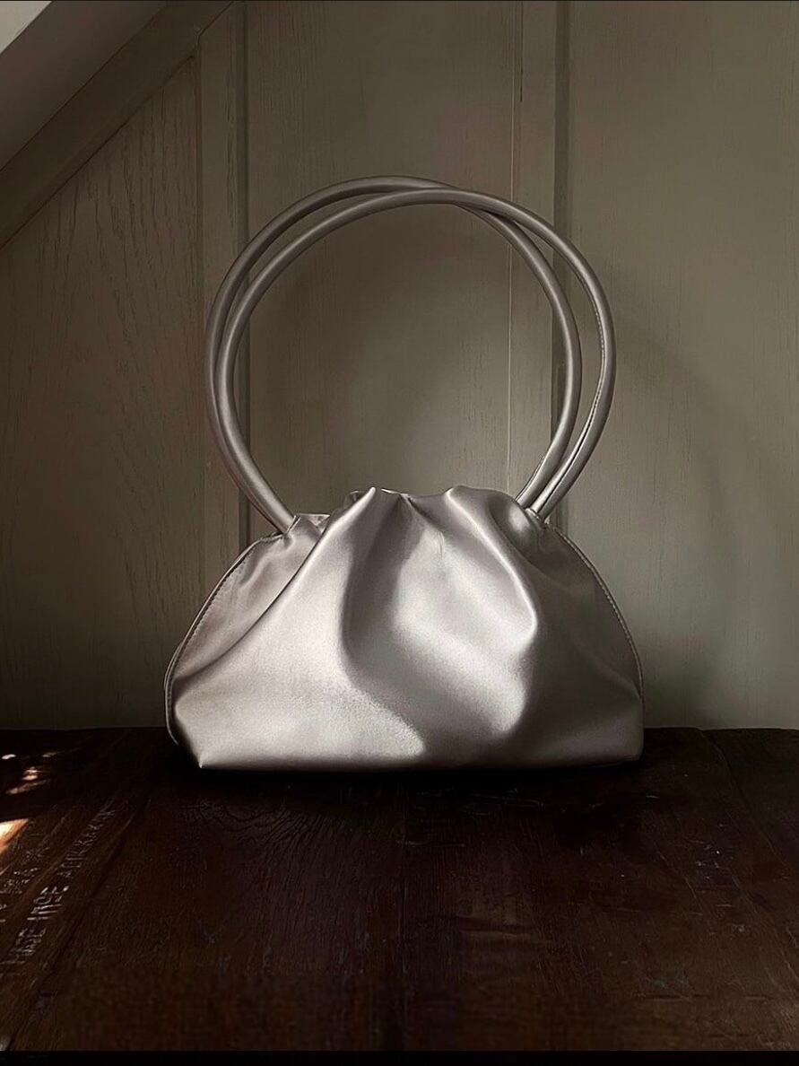 シンプルで洗練されたデザインが特徴のショルダーバッグです。シルバーのメタリックカラーが上品な印象を与え、どんなスタイルにもマッチする万能アイテムです。