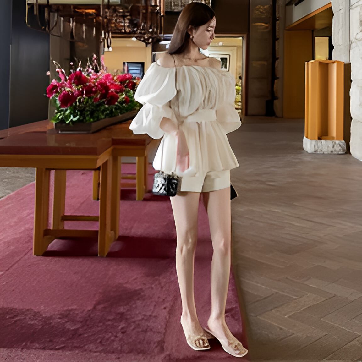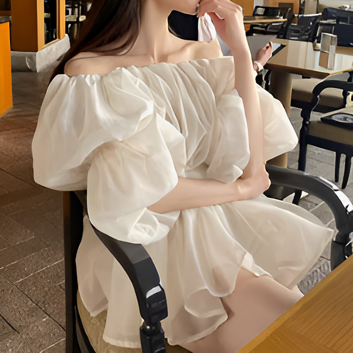 Puff sleeve off-shoulder dress【H00032】