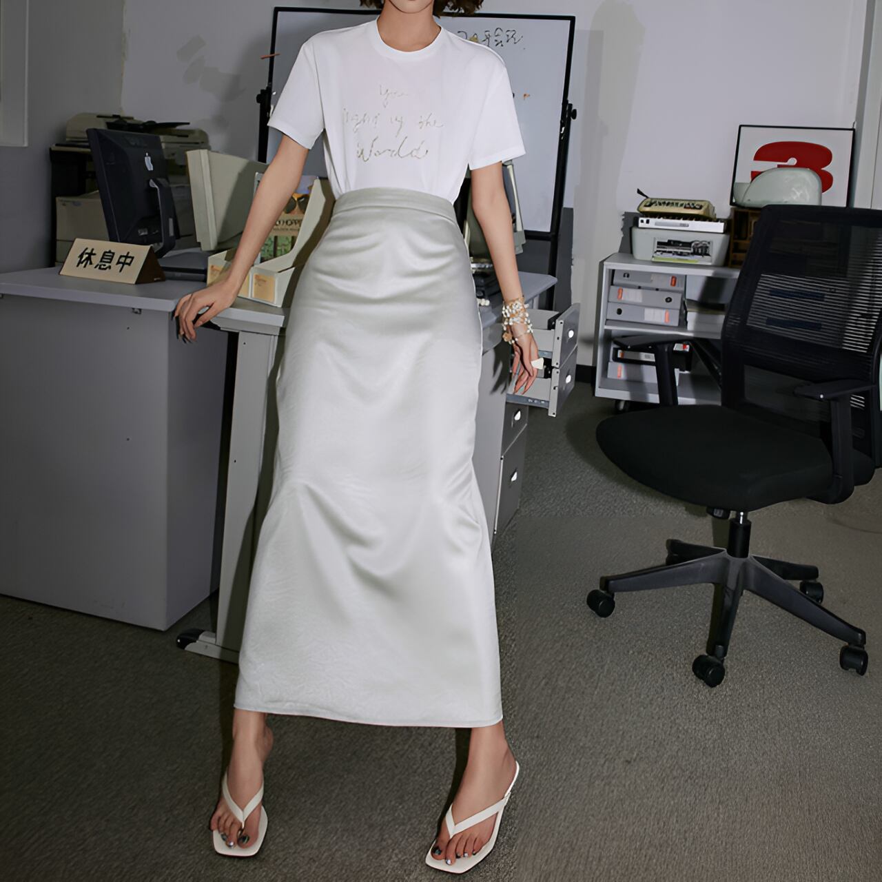 Blogger style gray line skirt【H00035】
