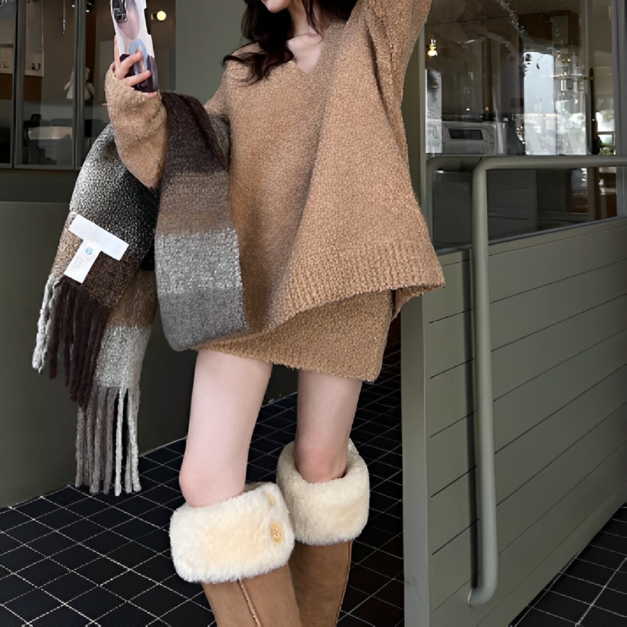 A simple loose v-neck sweater【H00047】
