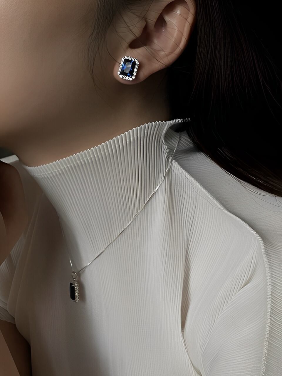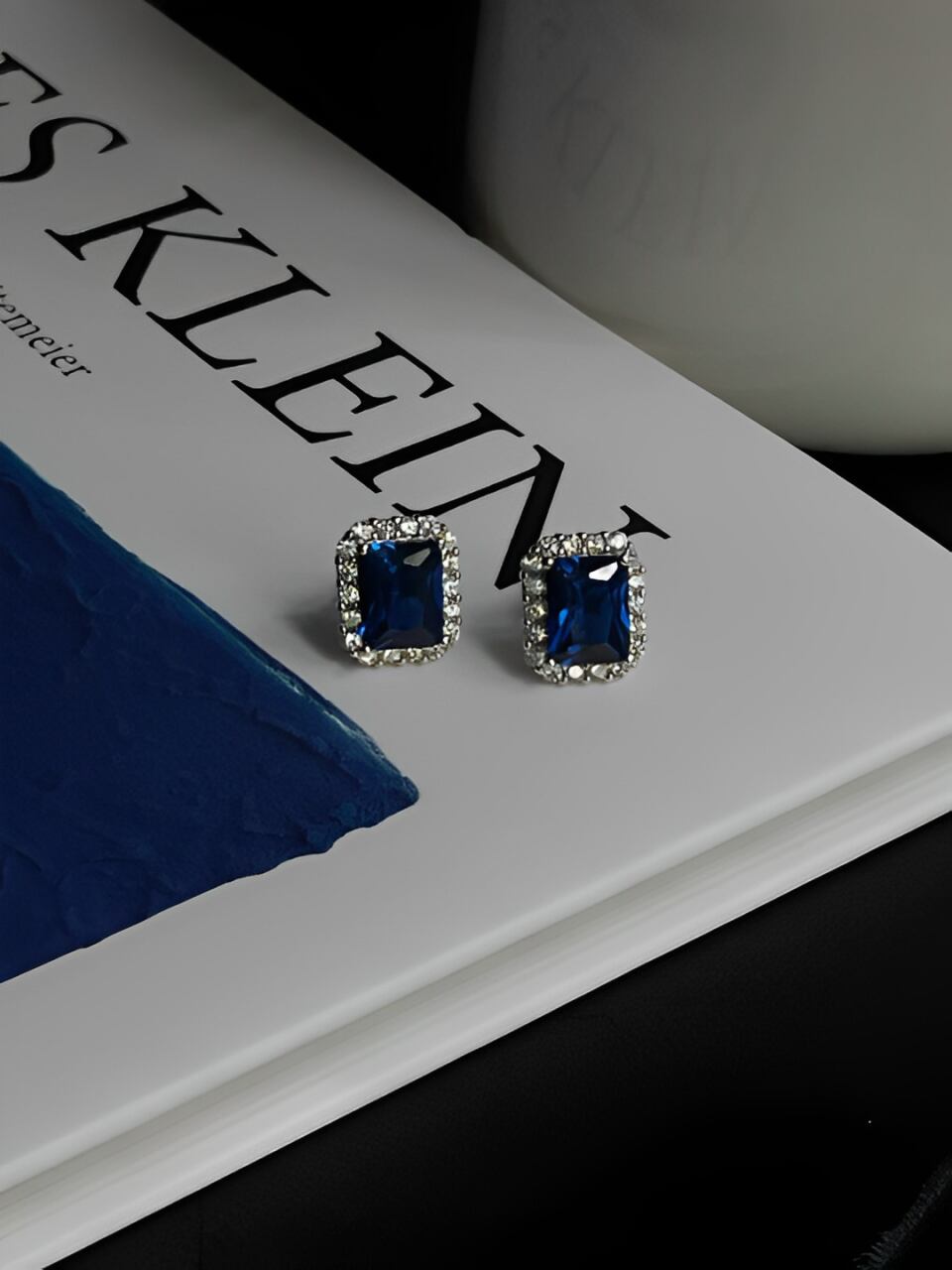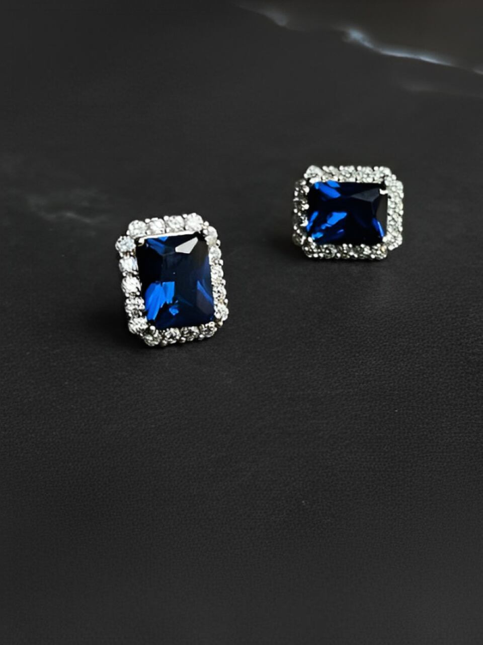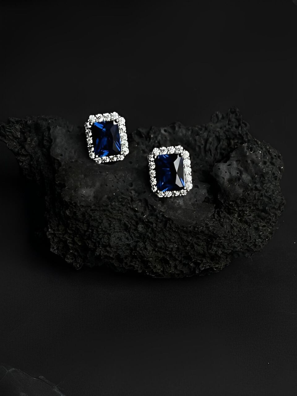 Dark blue zircon stud earrings【H00065】